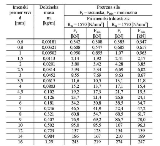 Vrv se sestoji iz 7 (1 + 6) zic, od katerih je sest ovitih okoli osrednje zice.