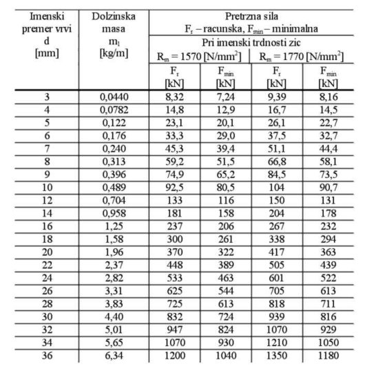 Vrv se sestoji iz 37 (1 + 6 + 12+18) zic, od katerih je okrog osrednje zice ovito v prvem sloju 6 zic, v drugem sloju 12 zic, v tretjem sloju pa 18.