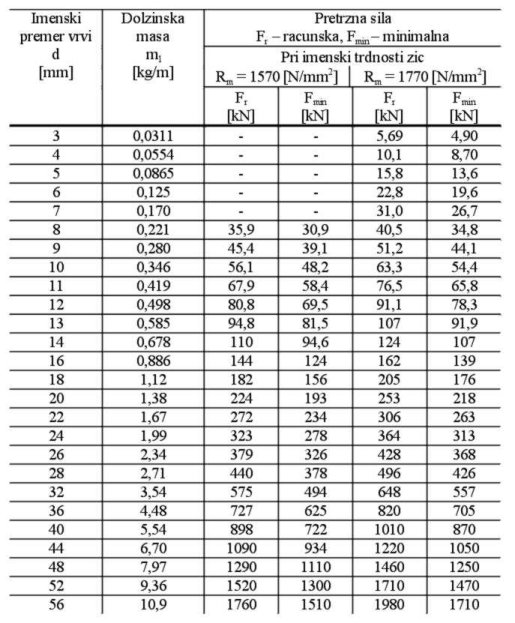 Vrv se sestoji iz 6 spletov po 19 (1 + 6 + 12) zic, od katerih je okrog osrednje zice ovito v prvem sloju 6 zic, v drugem sloju pa 12 zic, spleti pa so oviti okrog vlaknastega strzena.